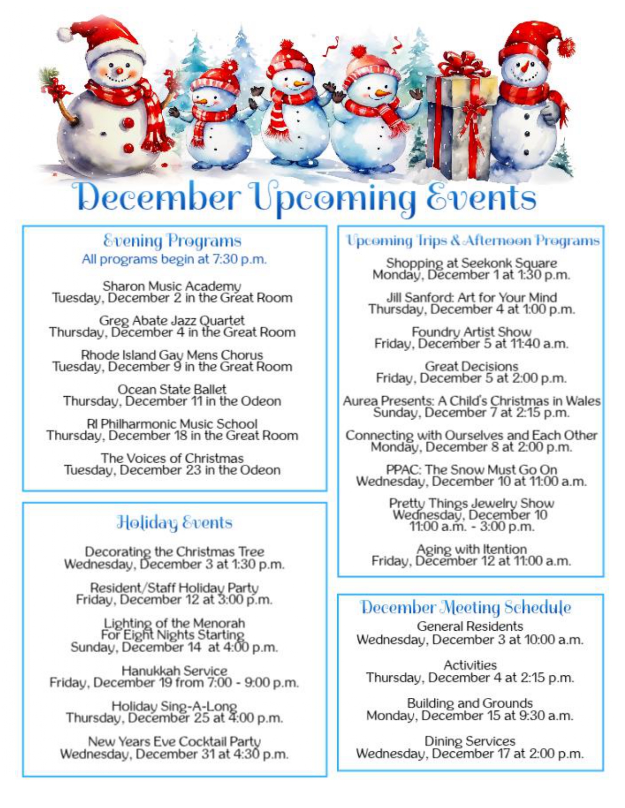 - Board of Directors: Tuesday, November 25 at 9:30 a.m. in the Odeon.