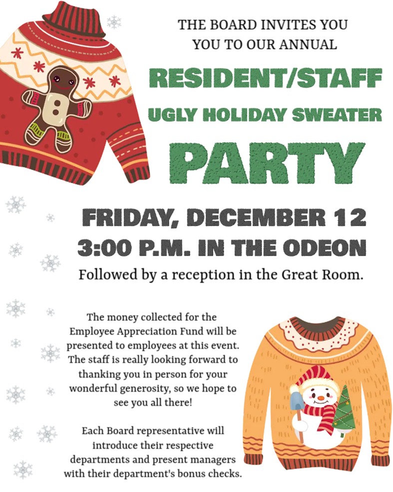 - General Residents Meeting: Wednesday, November 5 at 10:00 a.m. in the Odeon.